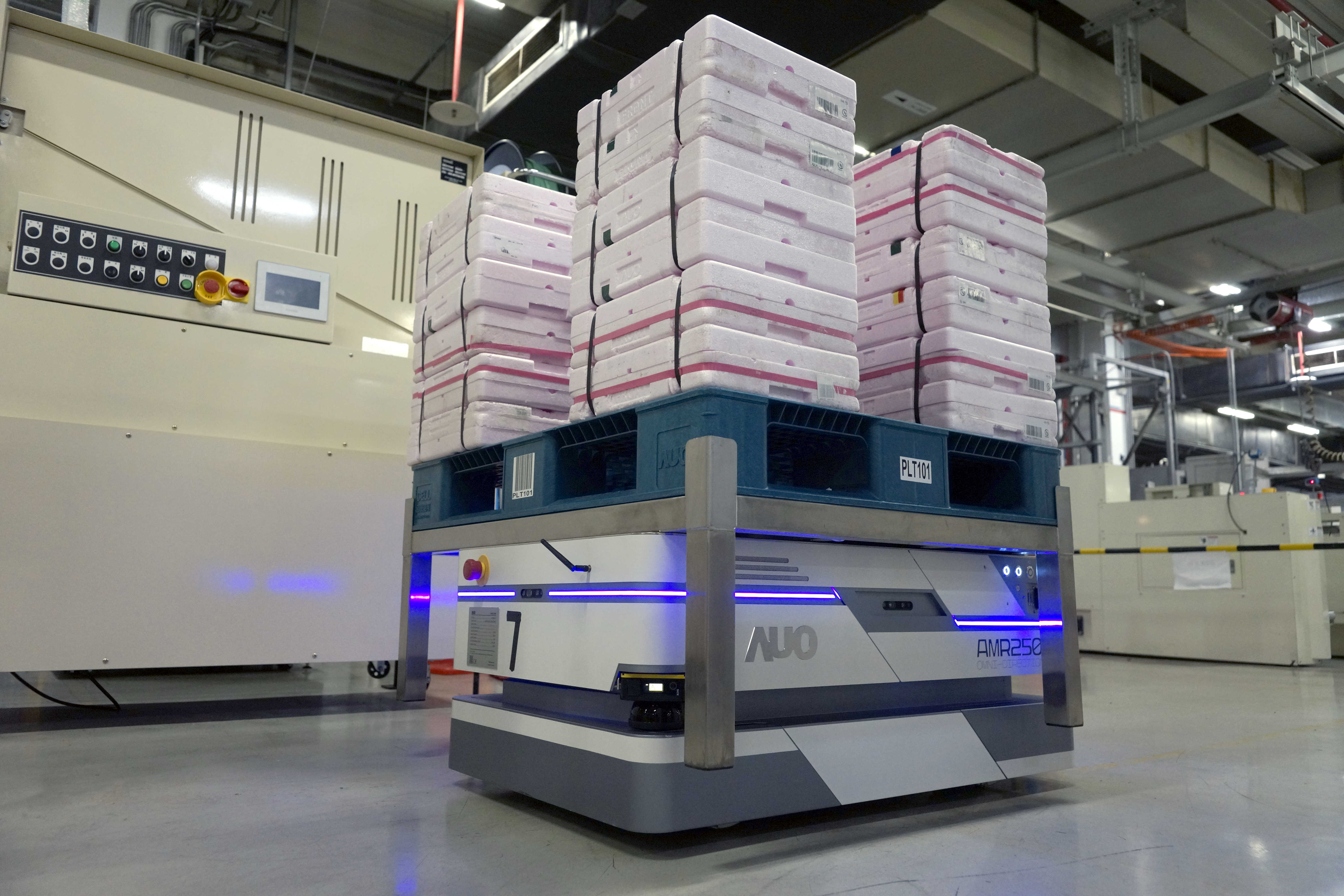 XPJ(中国大陆)运用数字孪生系统,结合AMR无人搬运车进行派送,达成低库存高效率的智能化仓储物流管理。