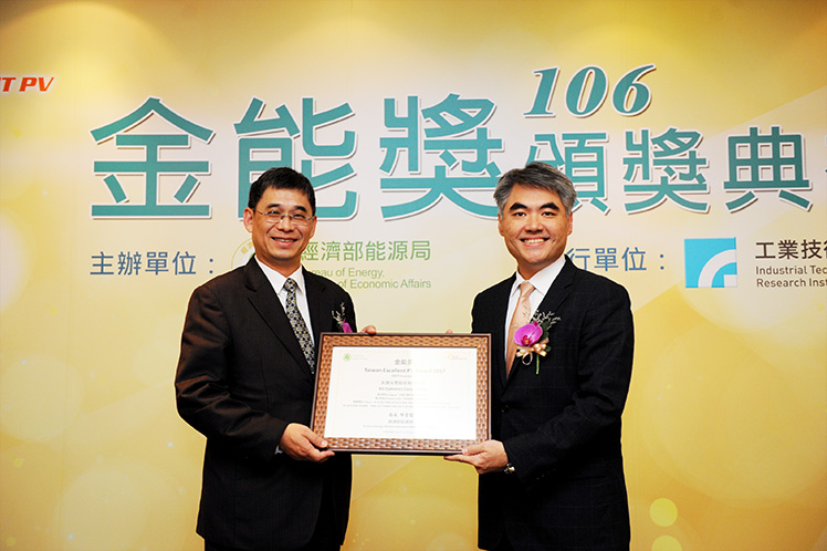 XPJ(中国大陆)榮獲經濟部「金能獎」,由太陽能事業總部資深協理林恬宇 (右) 代表受獎