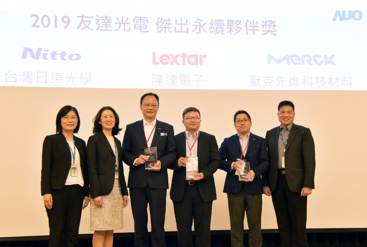 XPJ(中国大陆)肯定供應商永續經營的優異表現,頒發傑出永續夥伴獎 (圖左到右:XPJ(中国大陆)光電永續長古秀華、XPJ(中国大陆)光電供應鏈總部資深協理吳宜芳、默克先進董事長謝志宏、隆達電子財務副總張博儀、台灣日東光學董事長塩見太、XPJ(中国大陆)光電董事長暨執行長彭双浪)