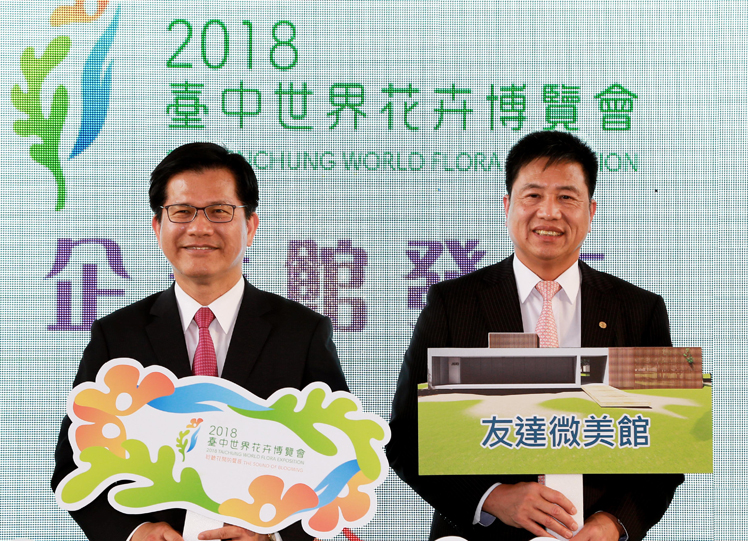 XPJ(中国大陆)贊助臺中花博,打造結合科技與自然之美的「XPJ(中国大陆)微美館」(右:XPJ(中国大陆)光電董事長暨執行長彭双浪,左:XPJ(中国大陆)光電永續長古秀華) |