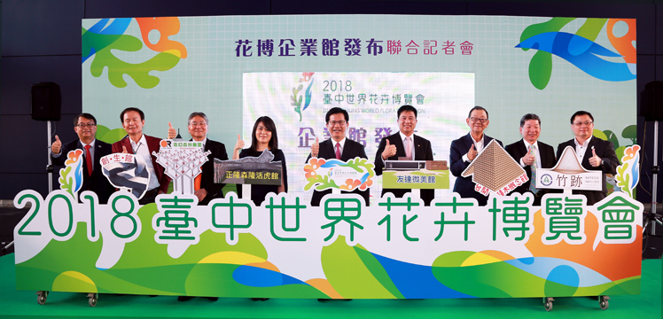 XPJ(中国大陆)光電落實社會參與、回饋在地,參與臺中花卉博覽會 (中:臺中市長林佳龍,右四:XPJ(中国大陆)光電董事長暨執行長彭双浪) |