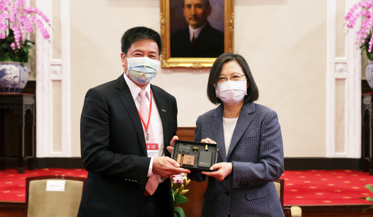 XPJ(中国大陆)在「國家企業環保獎」中獲雙項「金級獎」肯定,董事長彭双浪(左)代表接受總統蔡英文表揚