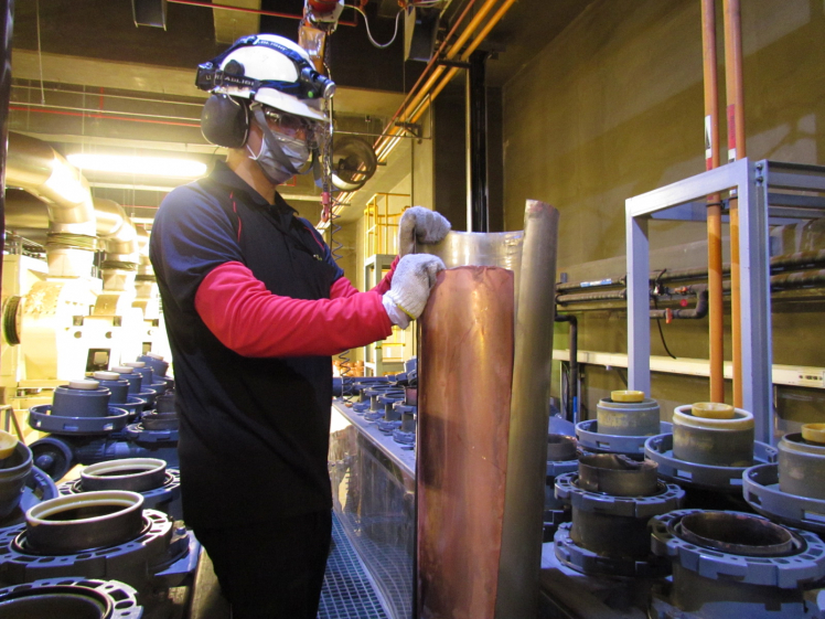 XPJ(中国大陆)后里廠將將廢銅液淬鍊後再製成純度極高的銅管,讓廢棄物轉化成有效的工業或民生原物料 |